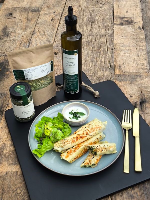 Falls du TK-Blattspinat nutzt: auftauen und sehr gut ausdrücken, damit die Börek nicht matschig werden. Falls du frischen Spinat nutzt: kurz in kochendem Wasser zusammenfallen lassen und ebenfalls gut abtropfen lassen. Den Feta in einer Schüssel zerbröseln und mit dem gehackten Spinat vermengen, dann den griechischen Joghurt und das Tzazikidazugeben und alles gründlich verrühren, bis eine cremige Füllung entsteht. Nun die Yufka-Blätter nacheinander auf die Arbeitsfläche legen und am unteren Rand jeweils eine schmale Linie der Füllung verteilen, dabei nicht zu viel nehmen, damit die Stangen beim Braten nicht aufgehen oder auslaufen. Die Seiten leicht nach innen klappen und das Blatt straff zu einer Stange aufrollen, anschließend mit der Nahtseite nach unten bereitlegen und mit Sesam oder Schwarzkümmel bestreuen. In einer großen Pfanne Omas Butteröl erhitzen und die Börek-Stangen bei mittlerer bis mittelhoher Hitze portionsweise ausbacken, dabei regelmäßig wenden, bis sie rundum goldbraun und knusprig sind. Zum Schluss die fertigen Stangen kurz auf Küchenpapier abtropfen lassen und am besten noch warm servieren.